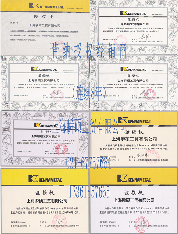 上海瞬碩工貿有限公司成立于2003年,是美國肯納金屬(連續9年)正式授權經銷商