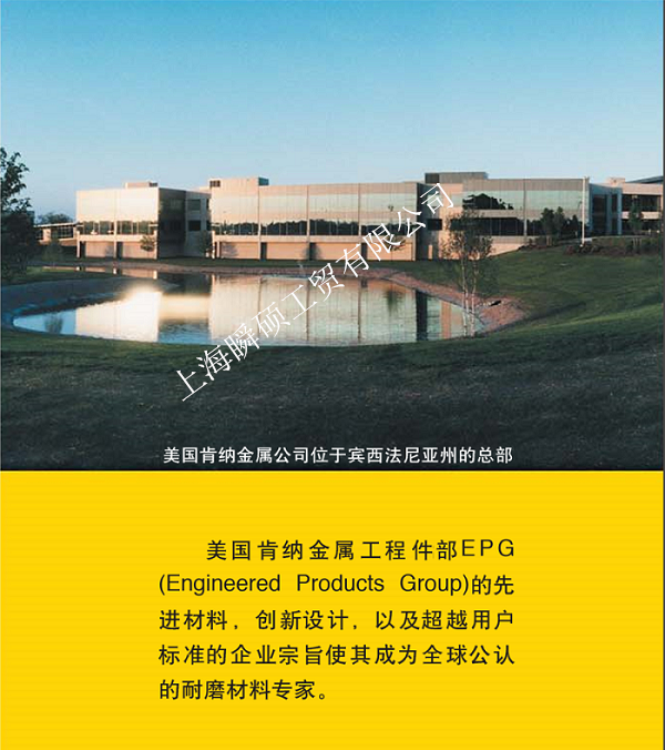 Kennametal公司創(chuàng)立于1938年,是粉末冶金和 刀具裝置制造業(yè)的領(lǐng)袖,是一家集科研、制造及營銷 為一體的跨國公司。總部設(shè)在美國賓西法尼亞州拉 特羅布市,并在30多個(gè)國家設(shè)有子公司、分公司、附 屬機(jī)構(gòu)和合資企業(yè)。它的業(yè)務(wù)是向金屬加工和制造行 業(yè)提供產(chǎn)品和服務(wù)的全面解決方案,產(chǎn)品廣泛應(yīng)用于 汽車、船舶制造、航空航天工業(yè);發(fā)電設(shè)備制造、石 油天然氣及石化行業(yè);鐵路運(yùn)輸、紡織機(jī)械、電子行 業(yè);道路建設(shè)、礦業(yè)及林業(yè)開采行業(yè);造紙、醫(yī)藥化 工和通用工程行業(yè)。肯納以其優(yōu)質(zhì)完備的產(chǎn)品和完善 的服務(wù)享譽(yù)世界六十年,是北美金屬切削業(yè)的領(lǐng)袖, 全球最大的專業(yè)刀具供應(yīng)商之一,同時(shí)又是采礦及道 路建筑工具業(yè)中的頂尖制造商,其生產(chǎn)的肯納金屬切 削刀具在現(xiàn)代制造領(lǐng)域一直處于世界領(lǐng)先地位。 同時(shí),肯納金屬公司以其在粉末冶金,尤其是碳 化鎢材料方面的技術(shù)優(yōu)勢,設(shè)立肯納金屬工程產(chǎn)品事 業(yè)部,推出系列耐磨、耐沖擊、耐腐蝕、耐高溫等定 制工程部件產(chǎn)品,提供在極端苛刻工作條件下的應(yīng)用 解決方案。目前在國內(nèi)推出的主要產(chǎn)品系列有:硬質(zhì) 合金標(biāo)準(zhǔn)及定制棒材,各種模具板材及定制預(yù)成型 件,模具成品-拉絲模/沖壓模具等,標(biāo)準(zhǔn)及定制刀具 棒料,PCB微鉆材料,水射流切割噴嘴(水刀),軋輥, 造粒盤和切粒刀,低密度聚乙烯、聚丙烯柱塞等等。